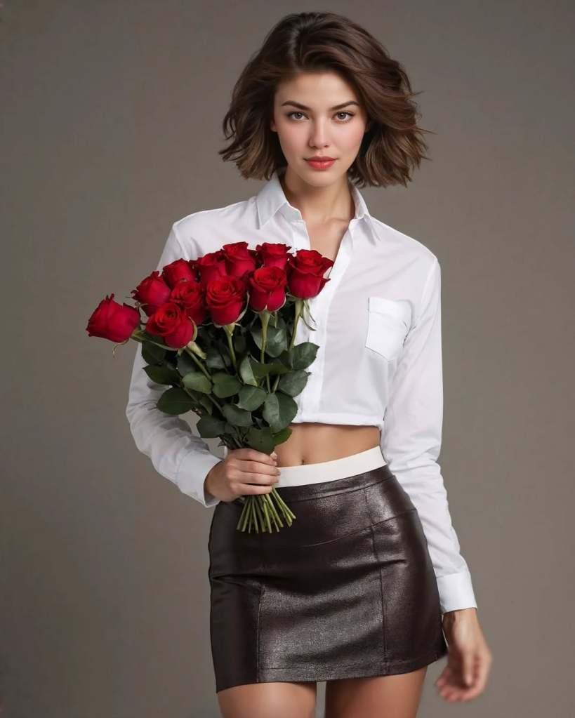 Pairing a white shirt with a midi skirt results in a feminine and elegant look. This combination is versatile and can be dressed up or down depending on the occasion.